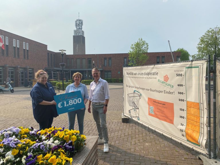 De tijd van verkennen is voorbij. Met ruim 60 vrijwilligers, meer dan 200 leden en steeds meer bedrijven en organisaties die zich achter het initiatief scharen, lijkt de buurtsuper van Someren-Eind er echt te komen. Om dit lokale initiatief te steunen, overhandigde woCom maandag 6 mei een cheque van maar liefst 1.800 euro aan de projectgroep Buurtsuper Einder. WoCom wil hiermee de leefbaarheid van het dorp een extra impuls geven en bijdragen aan de eenmalige verbouwingskosten die nodig zijn voor de buurtsuper om open te gaan.