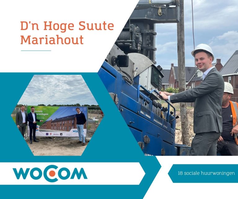Mariahout maakt zich op voor een aanzienlijke uitbreiding van betaalbare woningen. In de jonge wijk D’n Hoge Suute worden maar liefst achttien nieuwe sociale huurwoningen gerealiseerd door woCom. Donderdag werd het officiële startsein gegeven voor de bouw, waarbij de eerste funderingspalen werden geboord voor de acht levensloopbestendige woningen.