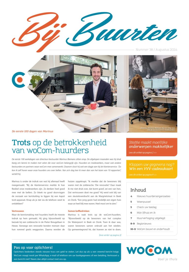 In deze Bij Buurten kijkt directeur-bestuurder Marinus Biemans terug op de eerste 100 dagen bij woCom. De afgelopen maanden was hij druk bezig om kennis te maken met velen die voor woCom belangrijk zijn. Huurders en medewerkers, maar ook andere bestuurders en partners waar woCom mee samenwerkt. “We kunnen samen veel bereiken, en dat doen we ook!” Merkt hij op.